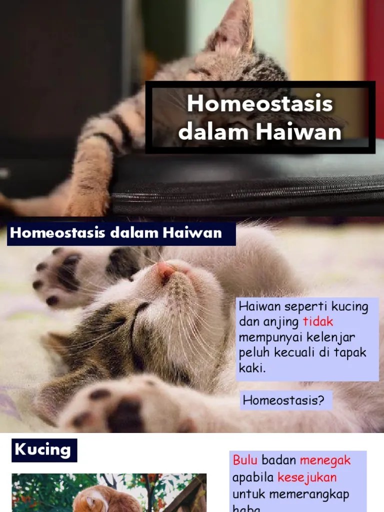 Haiwan berdarah panas · anjing menjelir lidah untuk membebaskan haba · kucing menjilat bulu di badan untuk menurunkan suhu badan · gajah mengipaskan telinganya dan .
